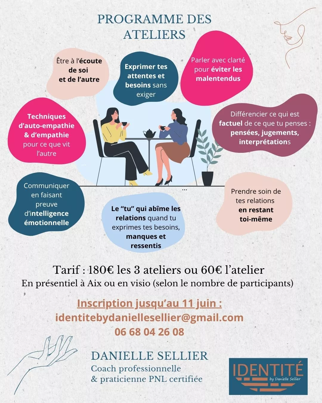 Participe aux ateliers collectifs que j’anime, sans t’engager à suivre un accompagnement individuel.